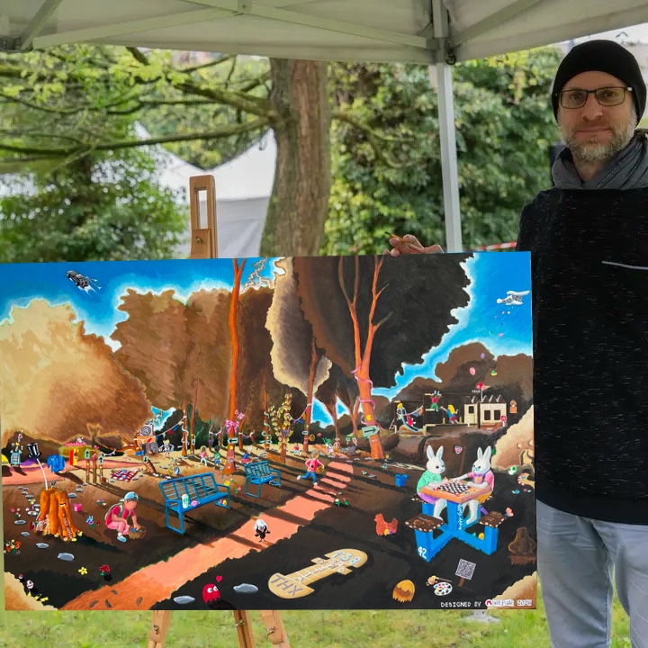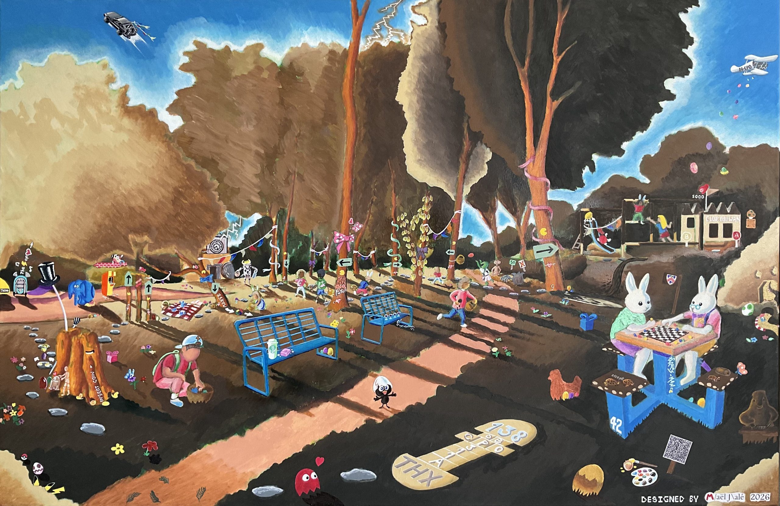 « ‘Pâques’ du bois Saint-Denis », tableau réalisé lors de la chasse aux œufs de Villiers-sur-Marne au parc du bois Saint-Denis, 04 avril 2026 (commande de la mairie de Villiers-sur-Marne)